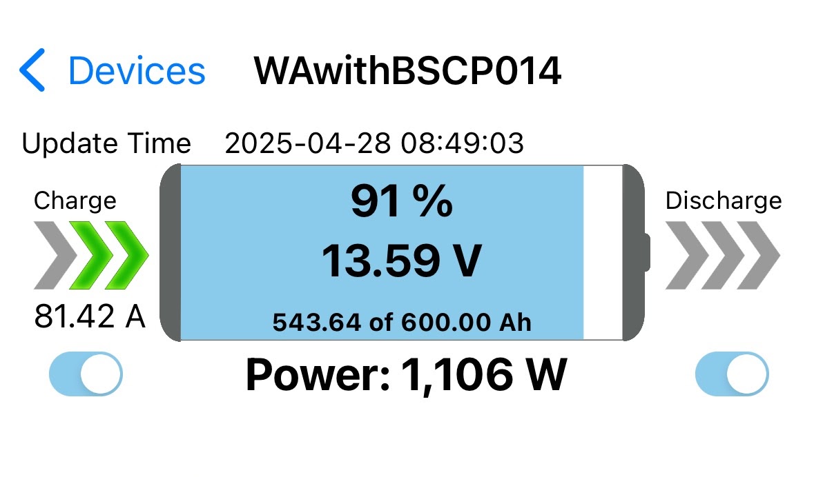高電圧時(満充電近く)でも80Aオーバーで充電されます。